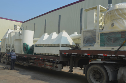 浙江衢州560木屑顆粒機(jī)組進(jìn)行裝車發(fā)貨