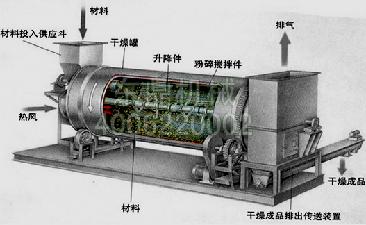 內打散滾筒污泥烘干機工作原理