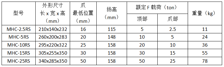 冠航MHC型液壓爪式千斤頂10噸